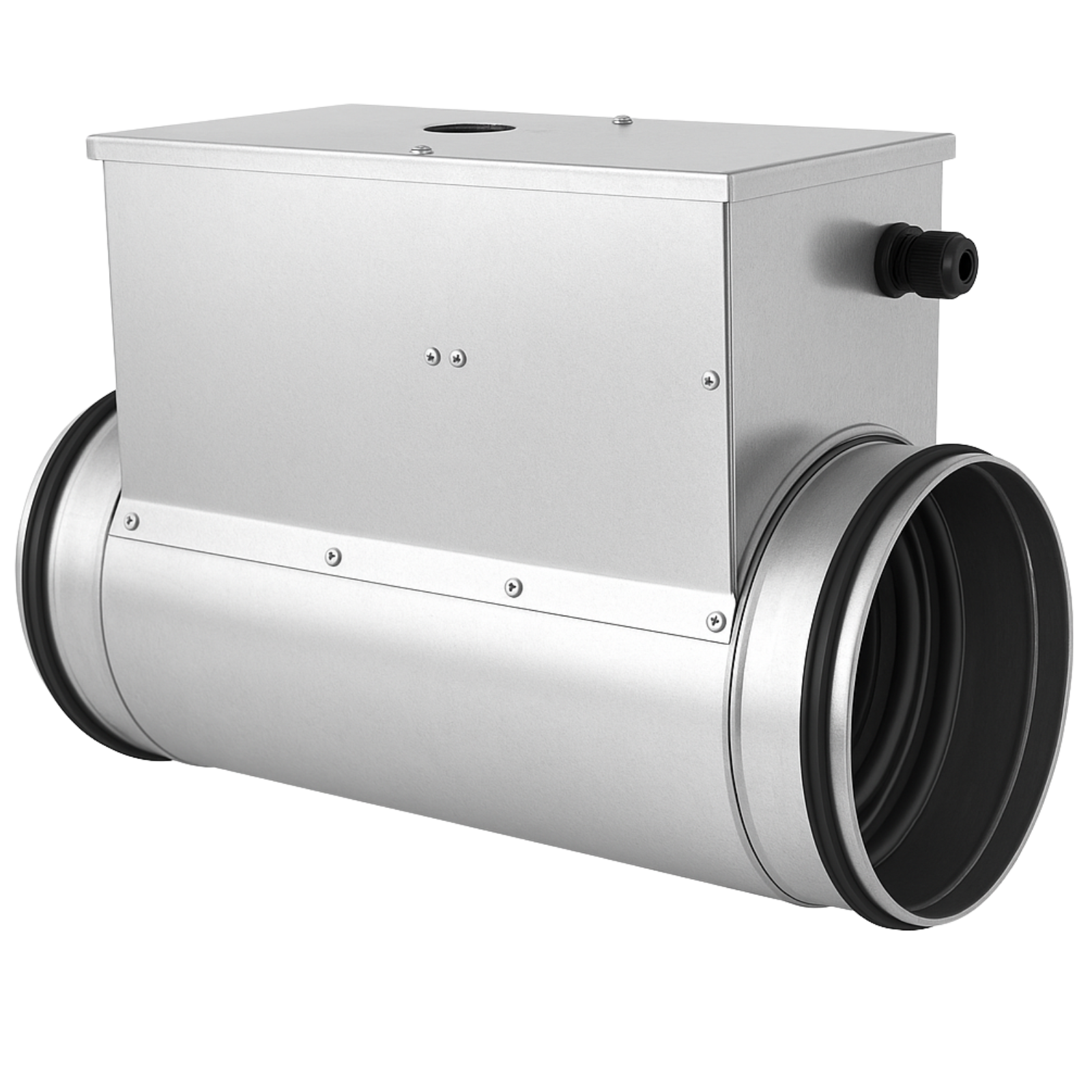 Sein Gehäuse besteht aus verzinktem Stahlblech, während die Heizelemente aus rostfreiem Stahl gefertigt sind. EPDM-Dichtungen an den Anschlussenden sorgen für eine luftdichte Verbindung im Lüftungssystem. Für maximale Sicherheit ist der Elektroheizer mit einem zweistufigen Überhitzungsschutz ausgestattet. Der erste Thermostat begrenzt die Temperatur automatisch bei 60 °C und setzt sich nach dem Abkühlen selbstständig zurück. Der zweite Thermostat tritt bei 90 °C in Kraft und erfordert eine manuelle Rückstellung, bevor das Gerät erneut in Betrieb genommen werden kann. Die Installation kann flexibel sowohl in vertikalen als auch horizontalen Lüftungskanälen unabhängig von der Luftstromrichtung erfolgen.