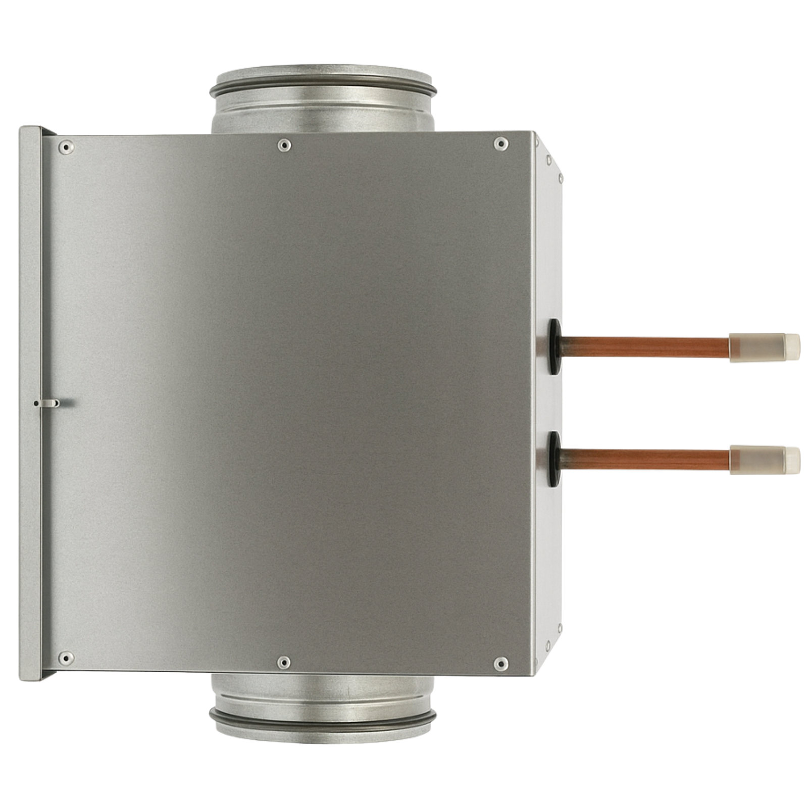 Dieser Lufterhitzer aus robustem, verzinktem Stahlblech ist ideal für den Einsatz in Lüftungsanlagen oder als Zusatzheizung in größeren Räumen und Hallen geeignet. Er lässt sich dank der beiden aus dem Heizregister herausragenden Kupferrohre ganz einfach in Ihre bestehende Heizungsanlage integrieren – eines der Rohre dient der Zufuhr von Warmwasser, das andere der Rückführung.